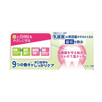 薬用成分 ポリエチレングリコール600、乳酸アルミニウム、フッ化ナトリウム(フッ素)、塩酸ピリドキシン、β-グリチルレチン酸