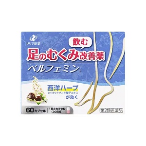 西洋ハーブ薬の「ベルフェミン」は、軽度の静脈還流障害による足のむくみや、疲れ・だるさ・痛みなどのむくみに伴う足の諸症状の改善を効能・効果とするセイヨウトチノキ種子エキス含有の医薬品です。